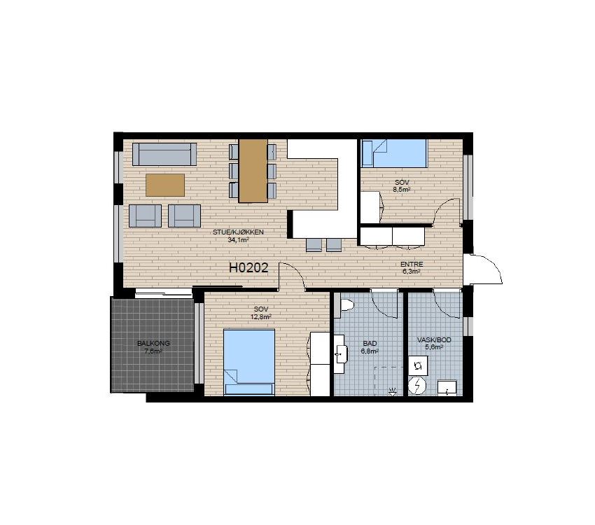 Praktisk 3-roms leilighet beliggende på bakkeplan inn mot et hyggelig fellesareal. Utgang til vestvendt balkong fra stuen. Leiligheten inneholder entre, 2 soverom, bad og vaskerom/bad i tillegg til stue/kjøkken.
