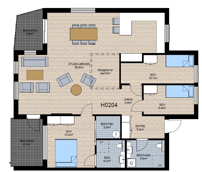 Planløsningen på leiligheten kan endres til f.eks å inneholde en utleie/-kontordel til en opsjonspris på kr 130.000,-. Ta kontakt for nærmere opplysninger.