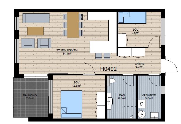 3-roms leilighet med mønt takhøyde på stuen - noe som gir en veldig fin romfølelse. Utgang til vestvendt balkong fra stuen. Leiligheten har 2 soverom. Vaskerom/bod med inngang fra entre. Leiligheten er vendt ut mot det hyggelige fellesarealet.