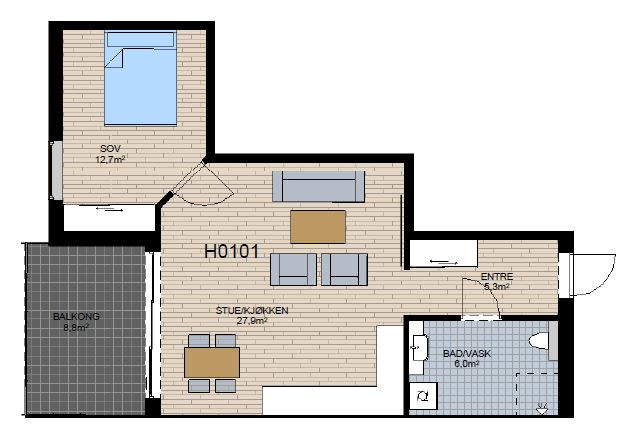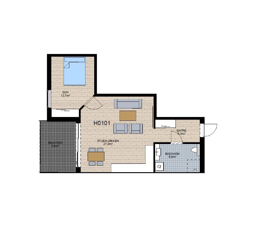 2-roms leilighet på bakkeplan med vestvendt balkong og flott utsikt mot Sørsundet.